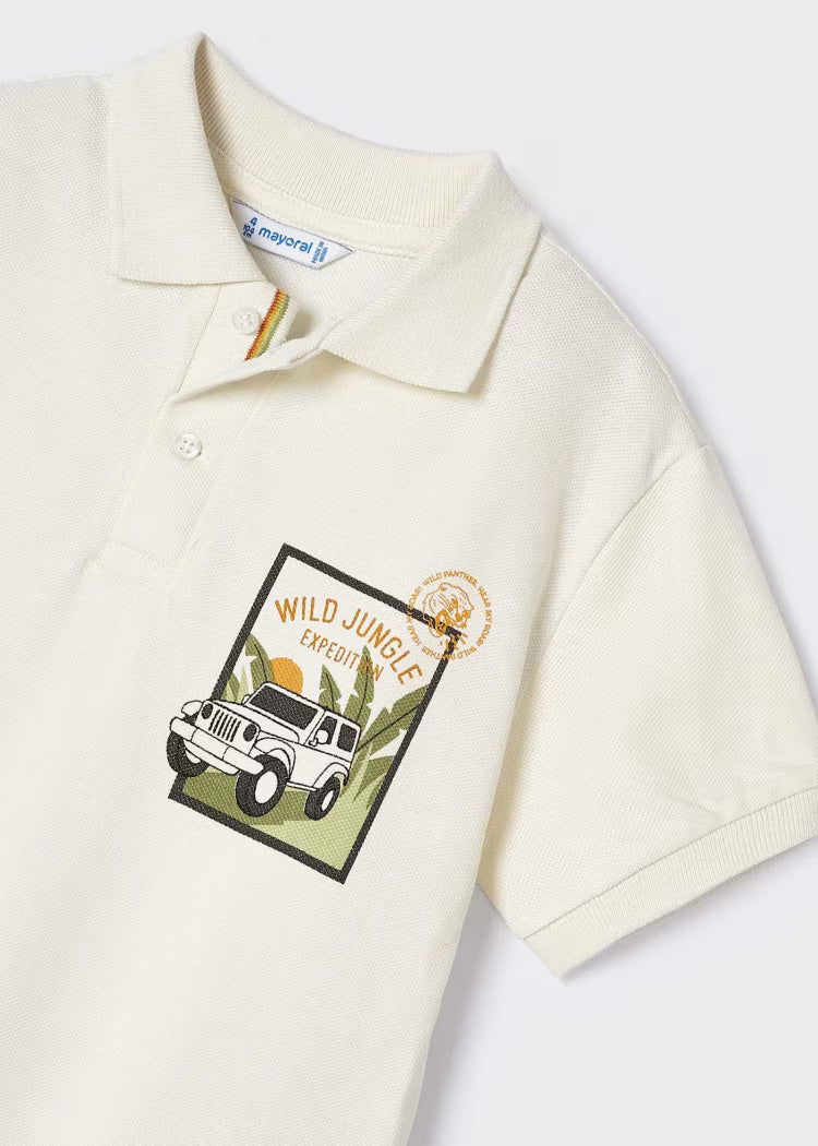 Polo manica corta bambino Mayoral"WILD JUNGLE" panna