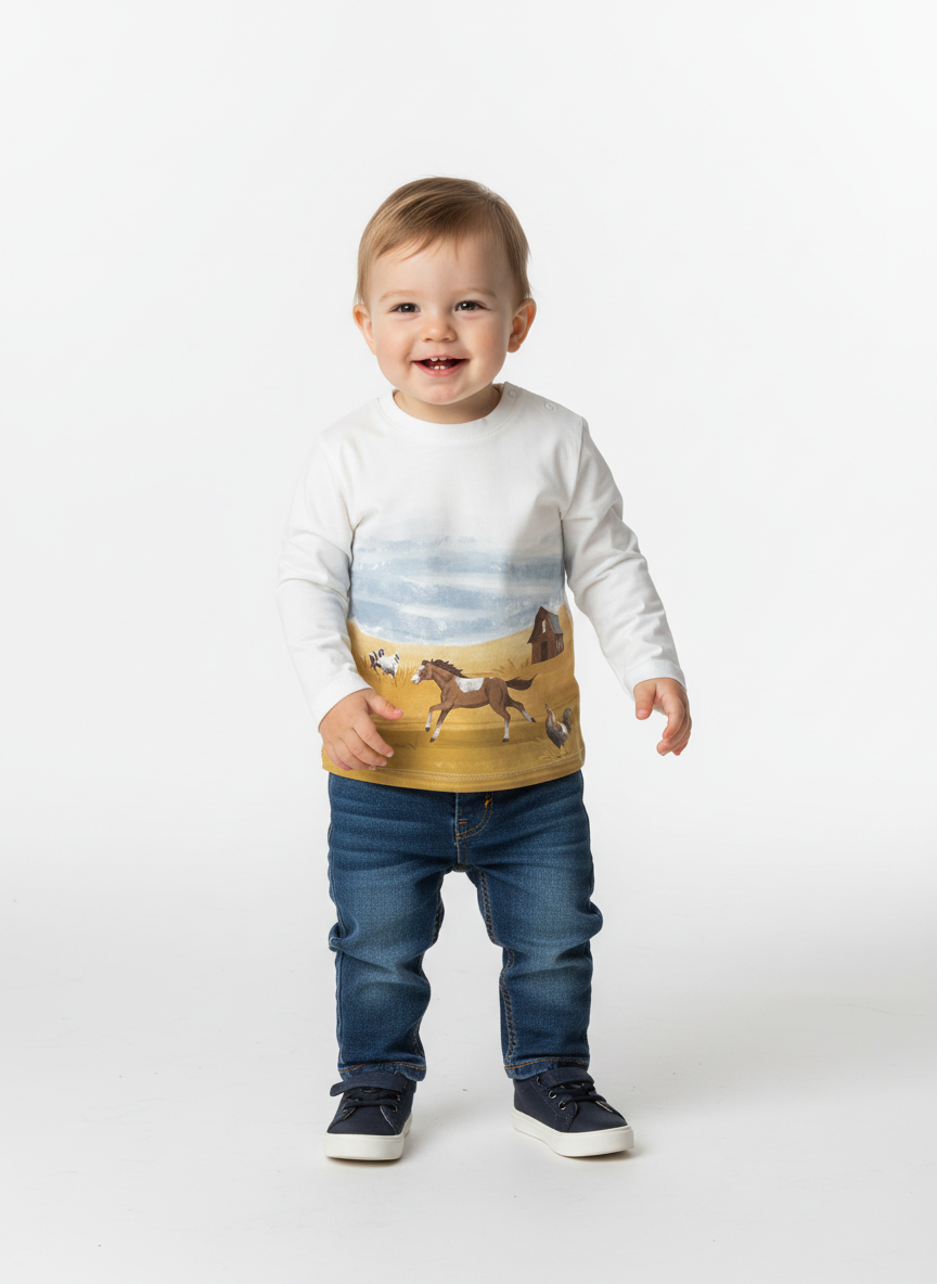 Maglietta neonato Mayoral "paesagi Cavalli" color panna