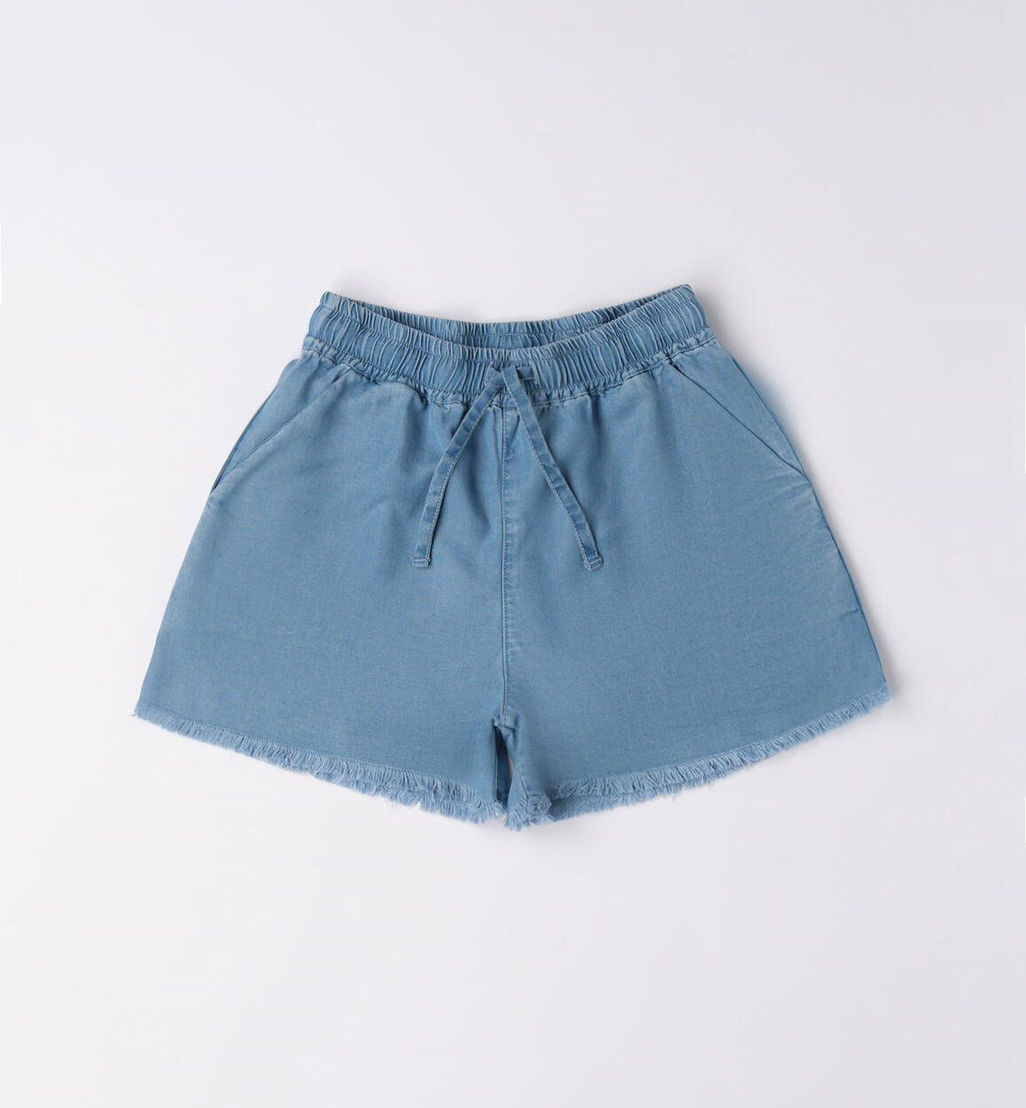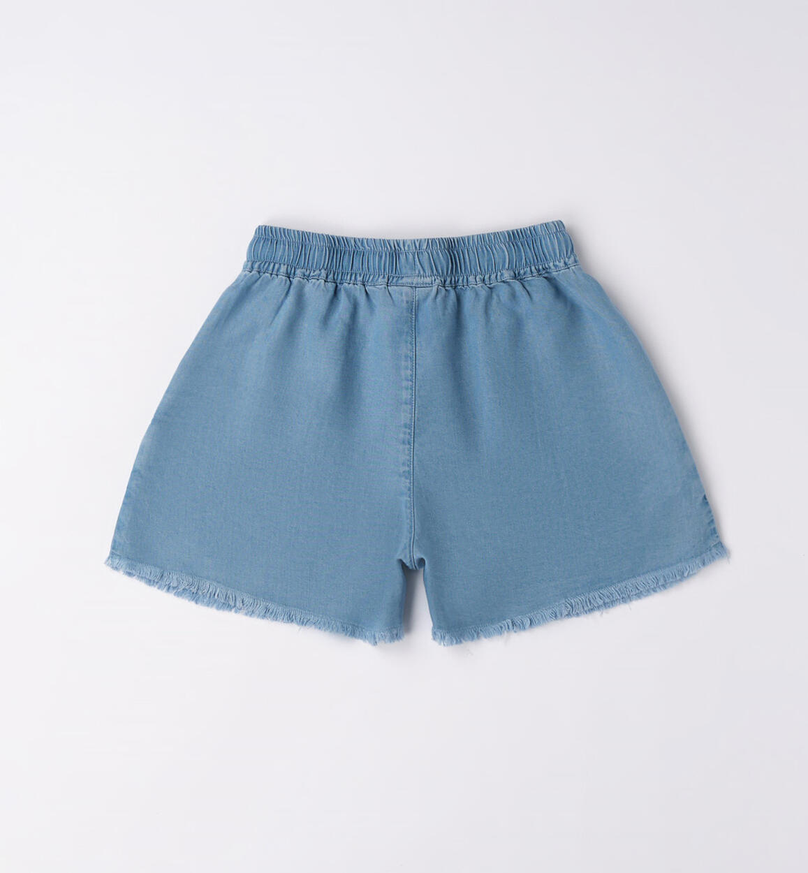 Pantalone corto iDO per ragazza in 100% lyocell. Modello ampio con elastico in vita e coulisse. Fondo gamba sfrangiato