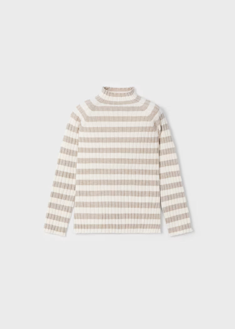 Maglietta lupetto costine bambina mayoral righe beige e panna