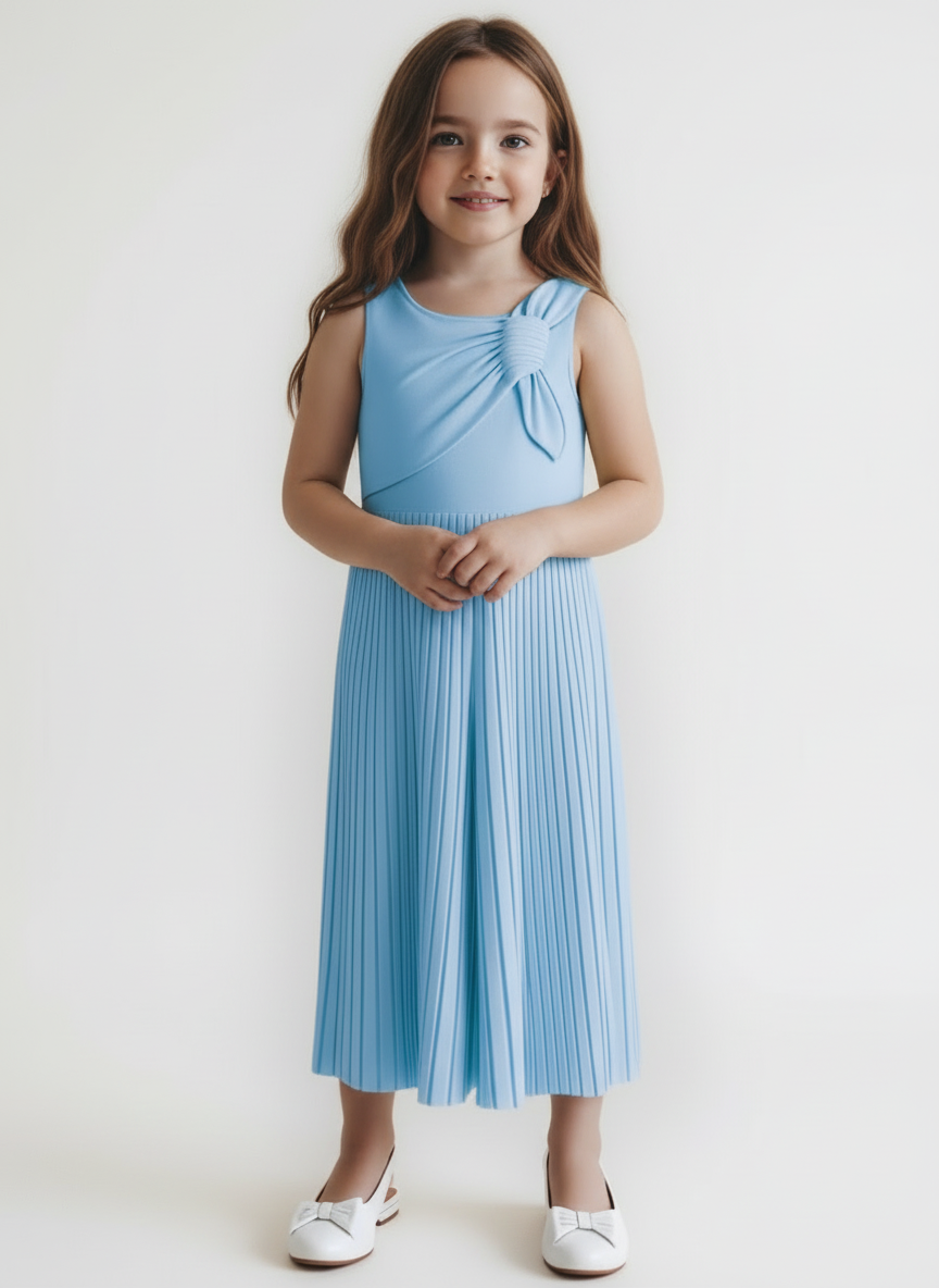 Tuta cerimonia plissettata fiocco bambina Mayoral azzurro cielo