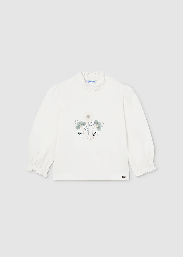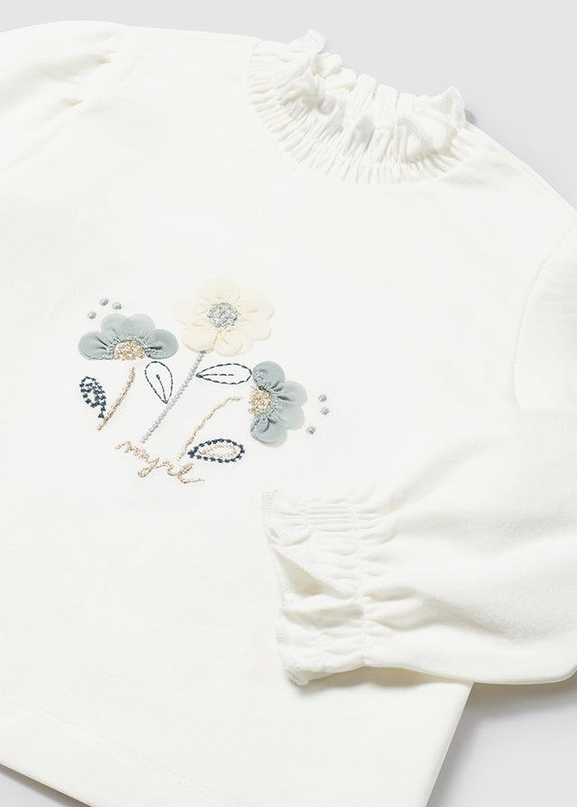 Maglietta dolcevita neonata Mayroal panna ricamo fiori giada