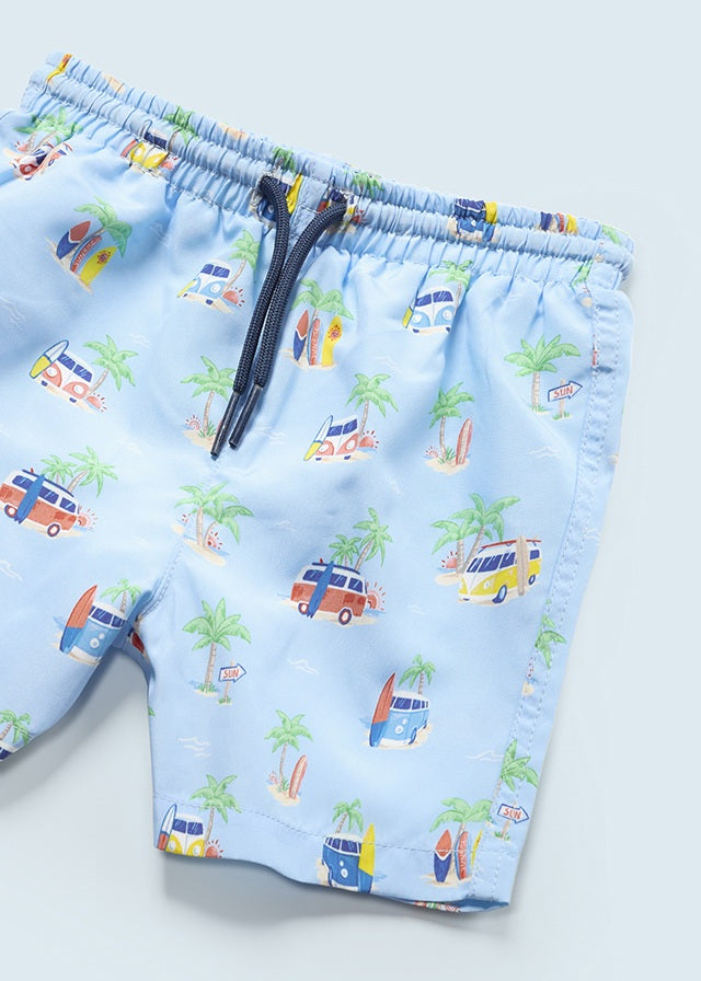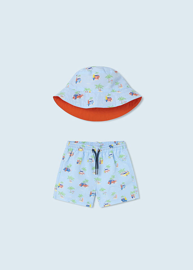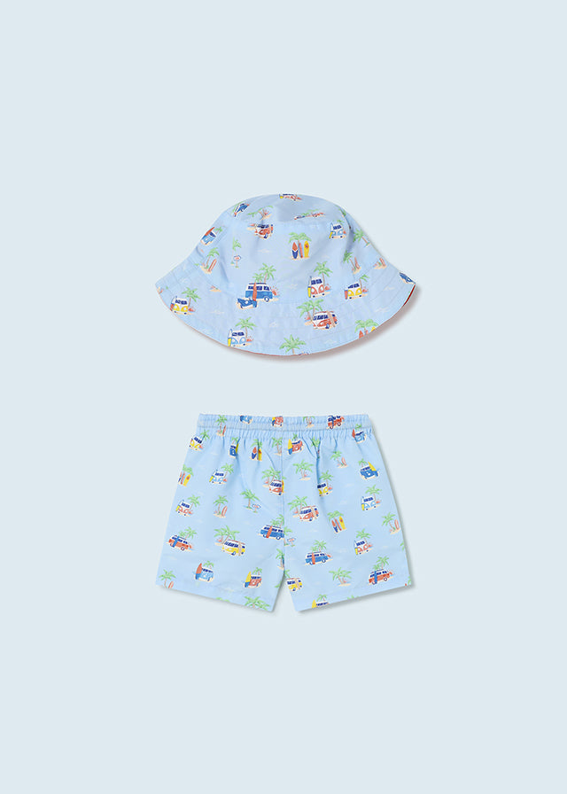 Completo costume e cappello reversibile protezione solare neonato Mayoral "Furgone e palme" Azzurro