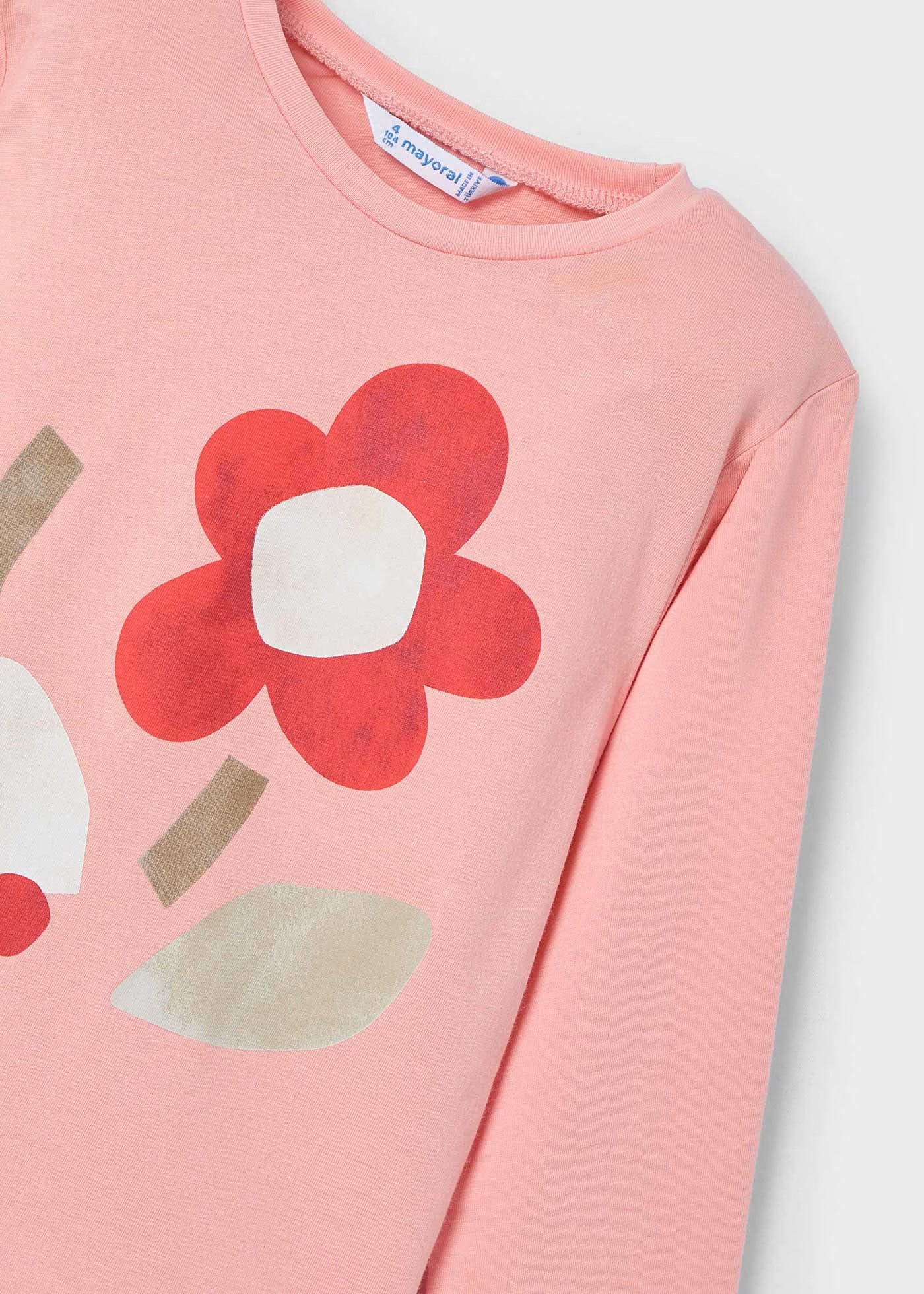 Langarm-T-Shirt für Mädchen mit lachsfarbenem Blumenmuster