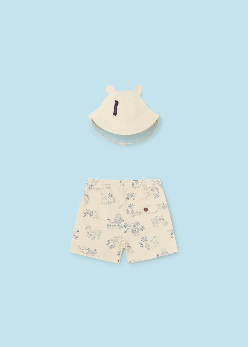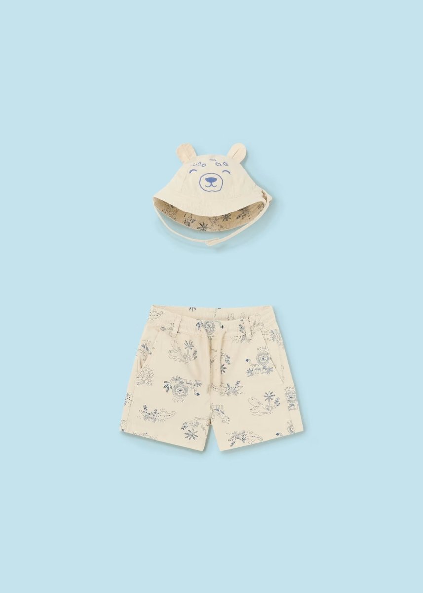 Bermudashorts und Wendemütze aus frischer Baumwolle für Neugeborene Beige „Jungle“