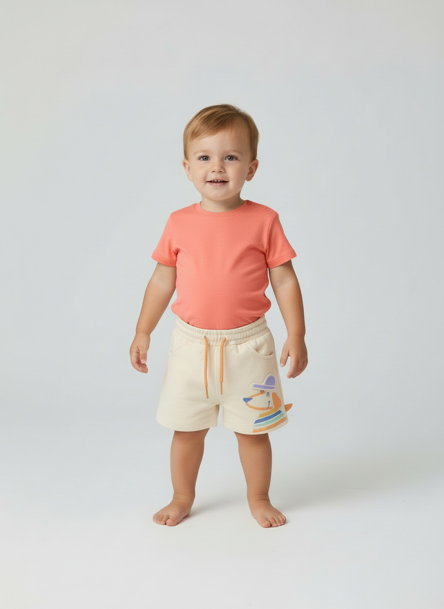Kurze Bermudashorts für Neugeborene. Verstellbarer Kordelzug.