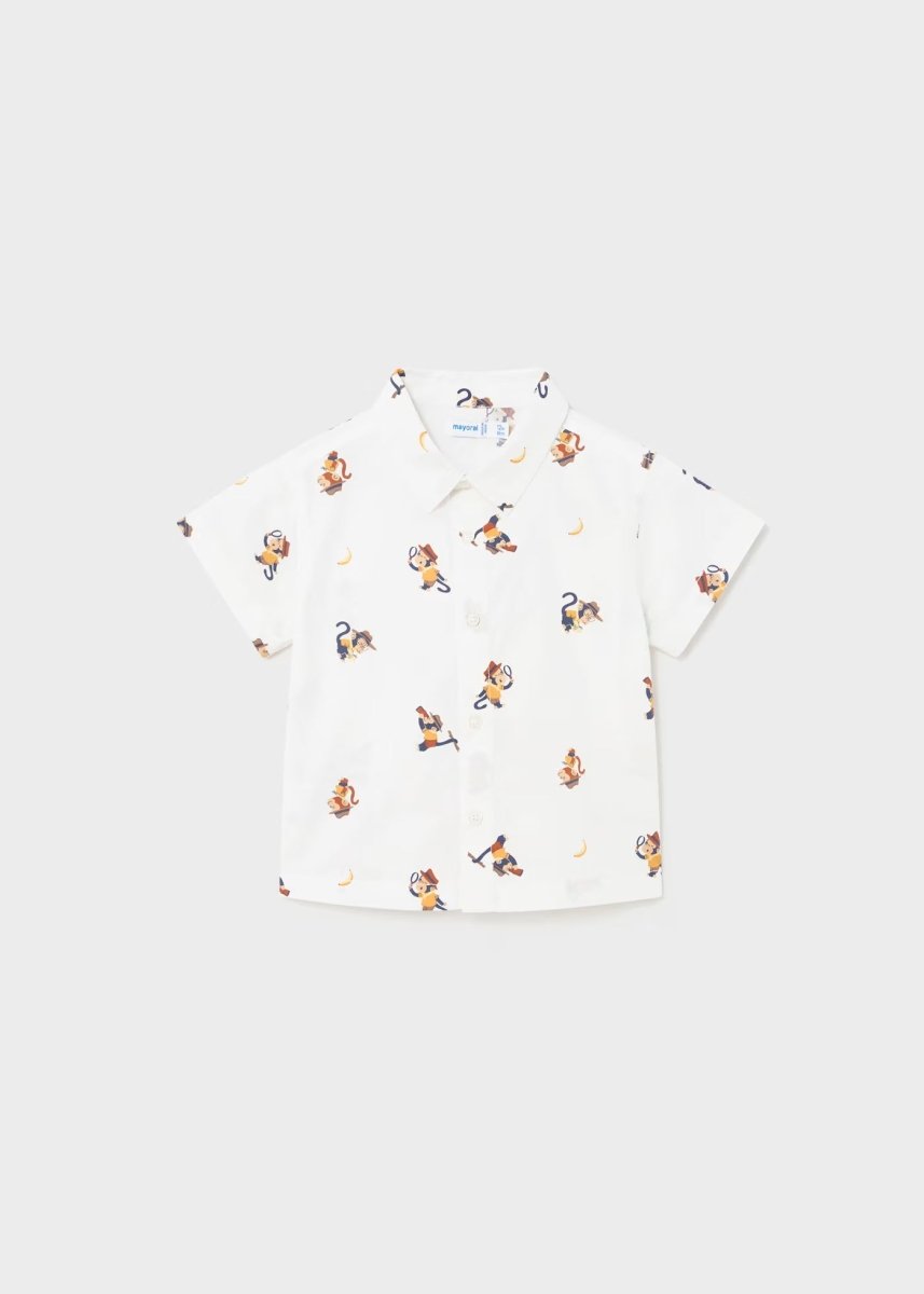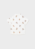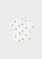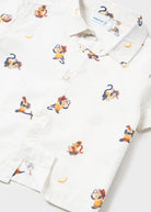 Kurzarmshirt für Babys. Hemdkragen. Knopfverschluss vorne. Stoff aus 100 % Baumwolle. Gedrucktes Design.