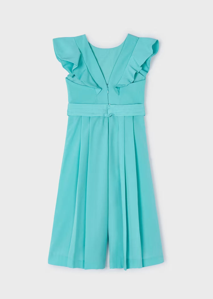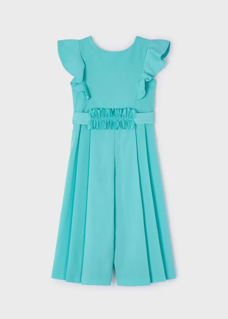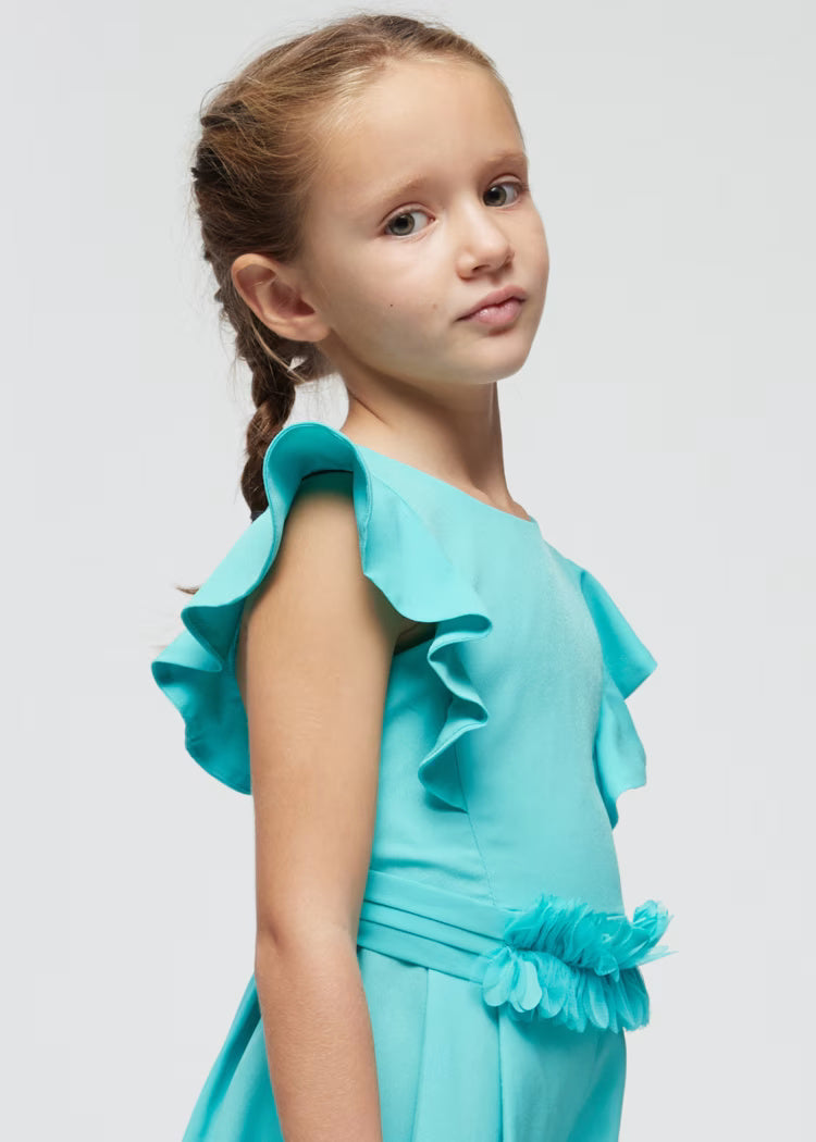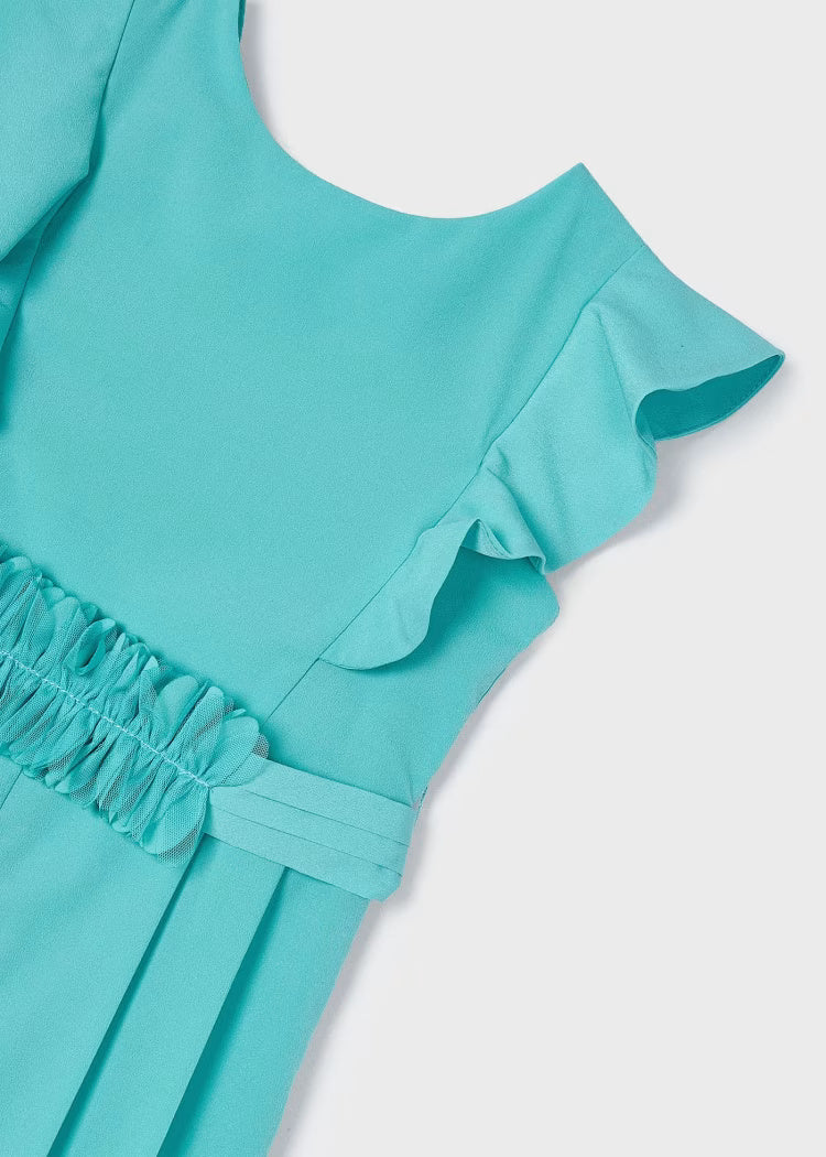Kurzarmkleid für Mädchen. Hintere Öffnung mit unsichtbarem Reißverschluss. Konfekt aus zarter Guipure für die elegantesten Anlässe. Modell mit Falten.