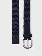 Kindergürtel aus der Mayoral-Kollektion. Dieser dunkelblaue Gürtel besticht durch eine Metallschnalle und ein elastisches Flechtmuster. Ein Accessoire, das den Look Ihres Kindes perfekt abrundet.