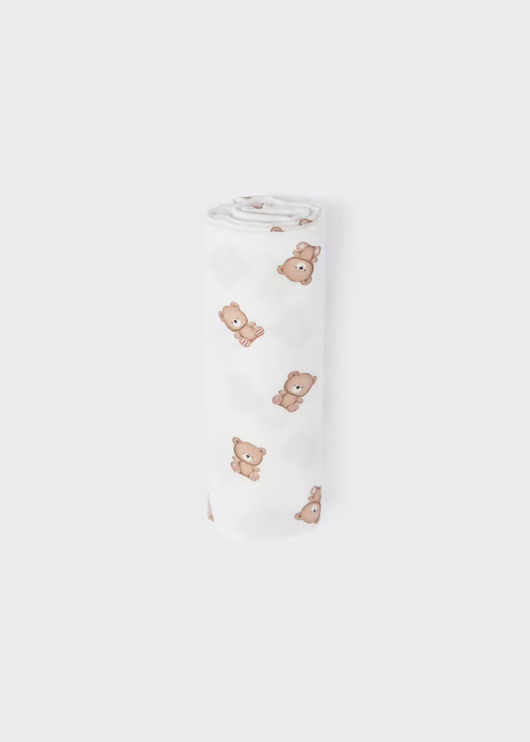 Großes Musselintuch 114x114 cm Mayoral Newborn „Teddybären“ weiß