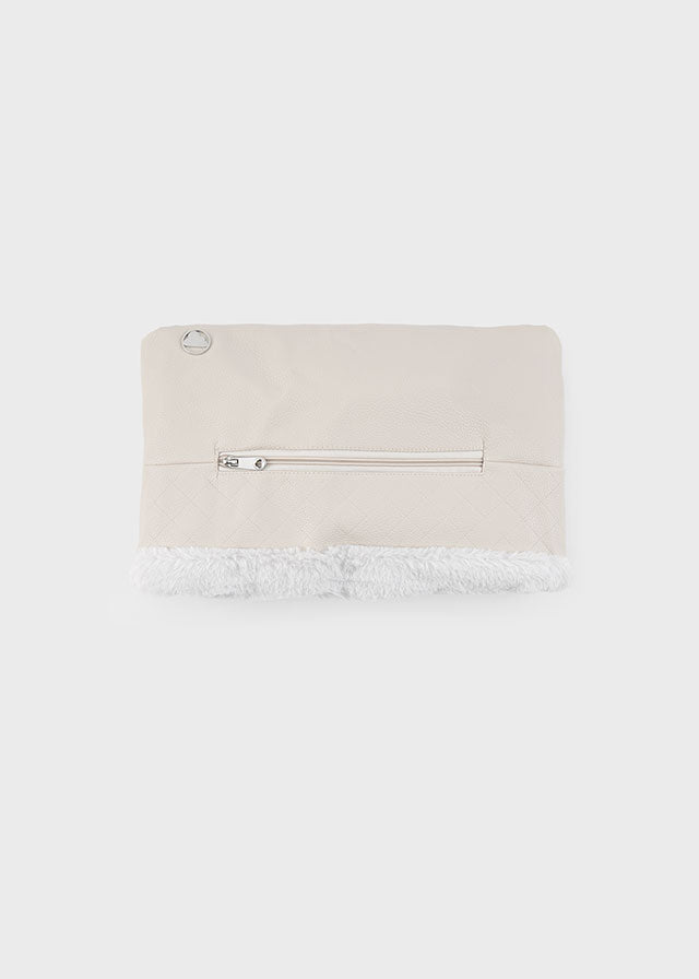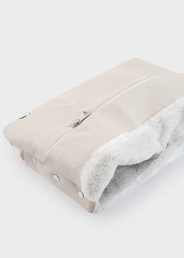 Ein weicher Kinderwagenüberzug, mit dem Sie mit Ihrem Baby spazieren gehen können, ohne kalte Hände zu bekommen. Ein praktisches und warmes Accessoire für den Winter. Das Außenmaterial besteht aus Kunstleder. Das Innenfutter ist aus feinem, weichem Fell. Mit Reißverschlusstaschen.
