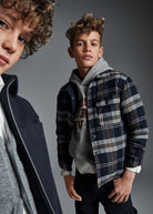 Mayoral blau kariertes, wendbares, wattiertes Überhemd für Jungen