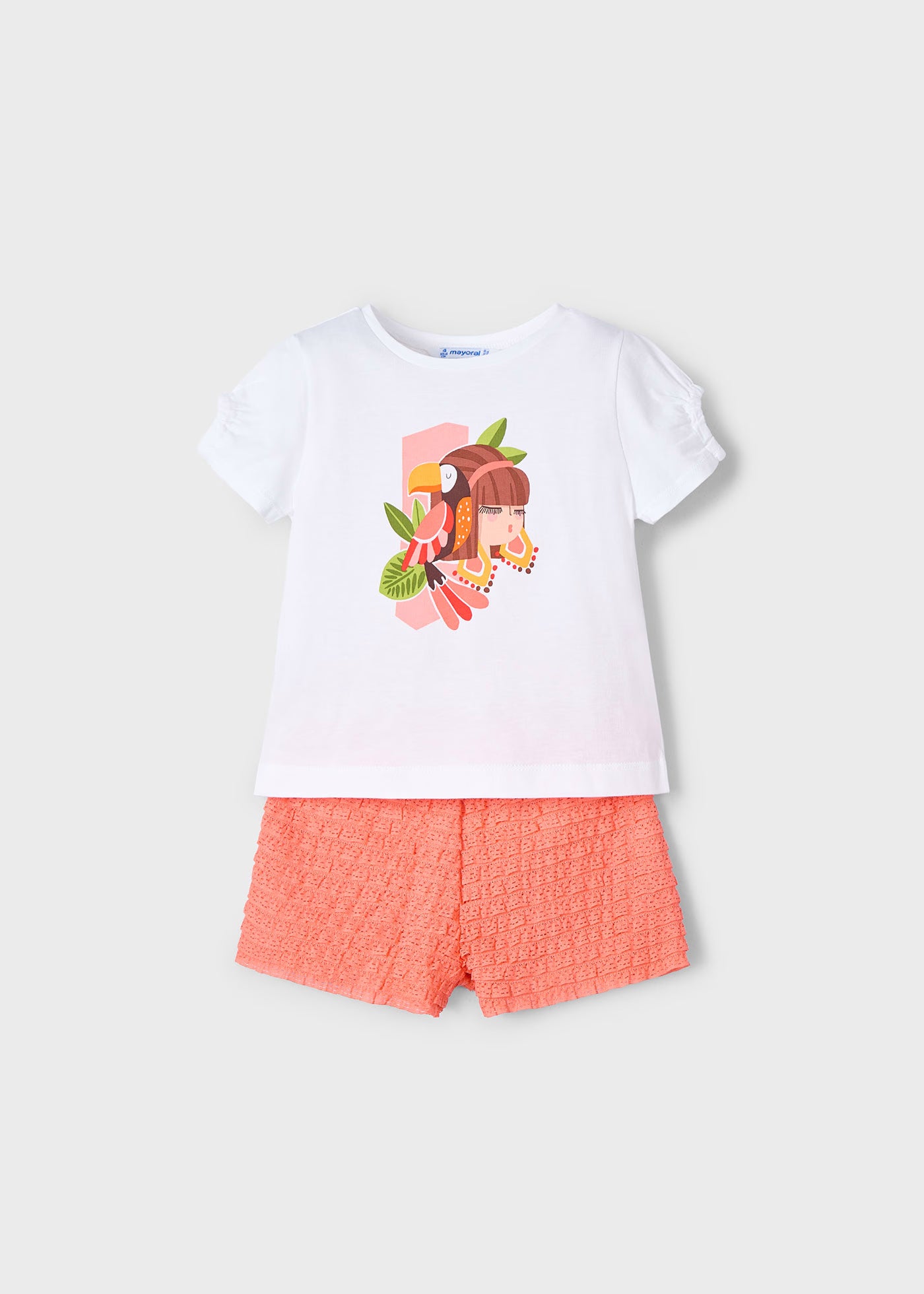 Mayoral „Bicycle Girl“ Mandarinenfarbenes Rüschen-Shorts-Set für Mädchen