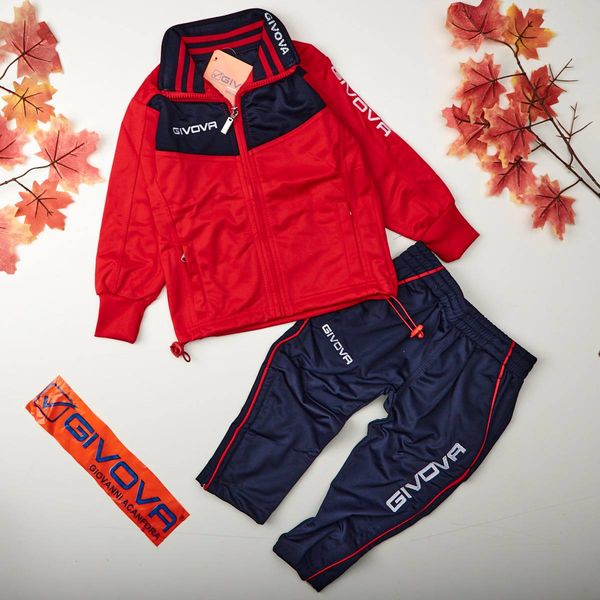 Givova Kinder-Trainingsanzug Modell „VELA“ Rot-Blau, ideal zum Tragen im Herbst und Winter. Hergestellt in 100 % Acetatpolyester.