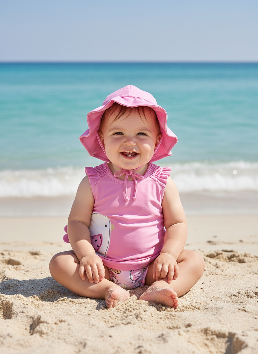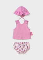 Mayoral Neugeborenen-Badeanzug-Set, 3-teilig, Sonnenschutz, Rosa „Vogel“