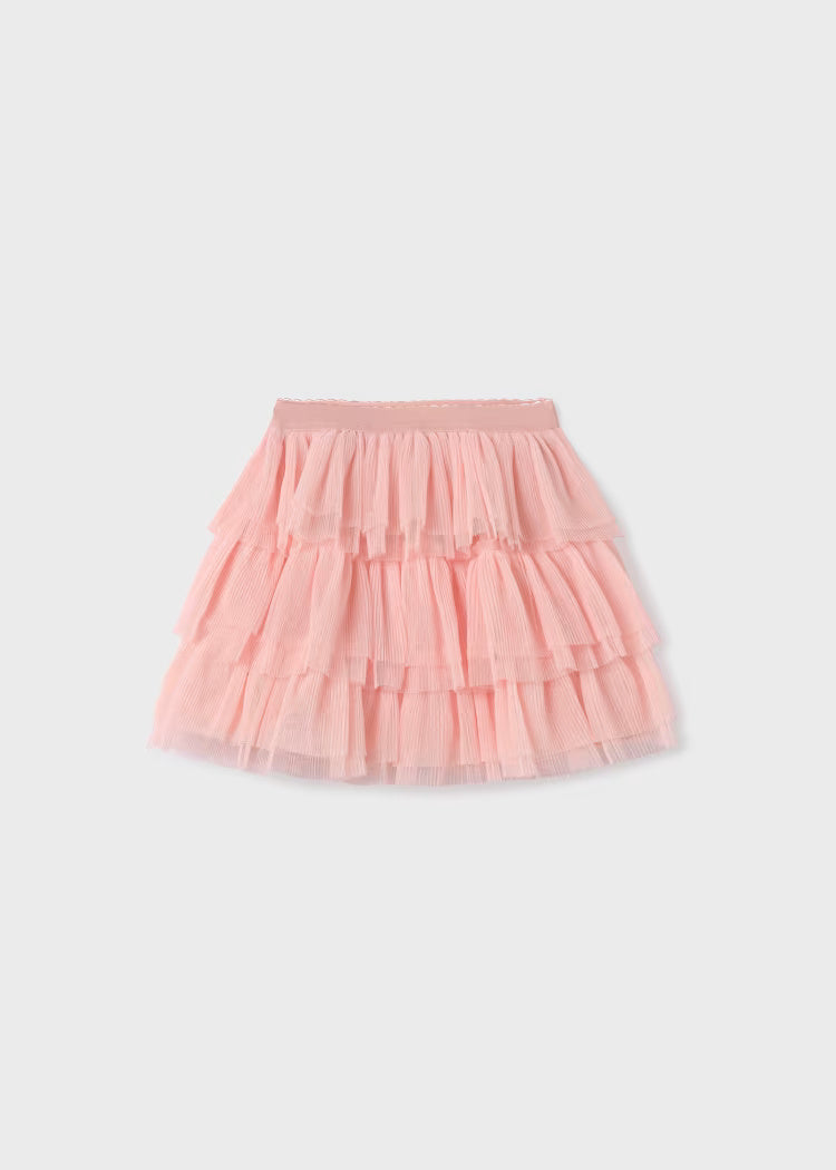 Kurzer Rock für Mädchen. Elastischer Bund für optimalen Sitz. Aus leichtem, luftigem Tüll gefertigt. Mit Falten und Rüschen.