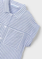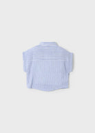 Kurzärmelige Bluse für Mädchen. Knopfleiste vorne. Praktische Vordertaschen. Gestreiftes Design.
