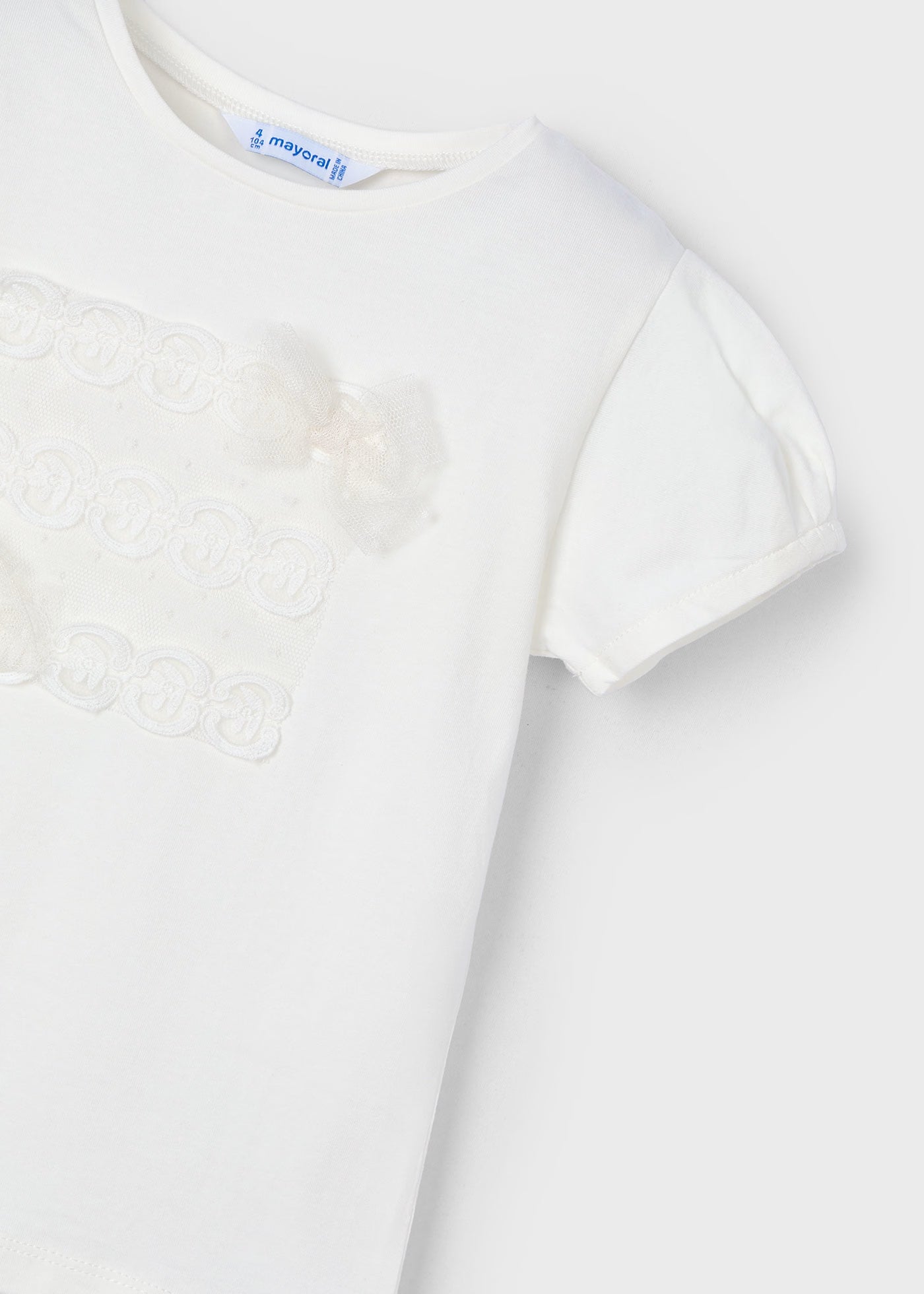 Mayoral cremefarbenes Plumetis-Schleifen-Mädchen-T-Shirt