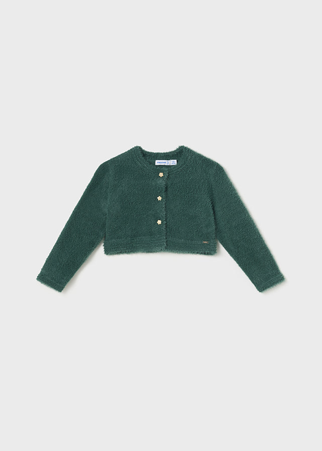 Mayoral Baby-Mädchen-Strickjacke in Flaschengrün mit Felloptik