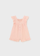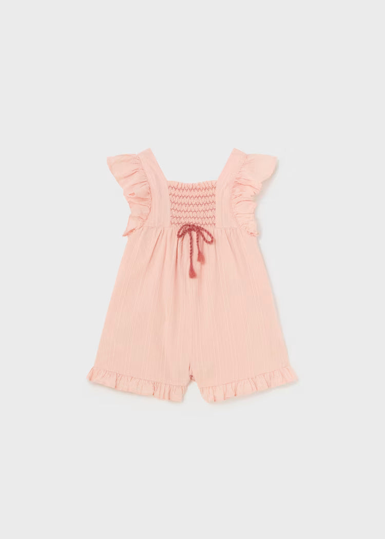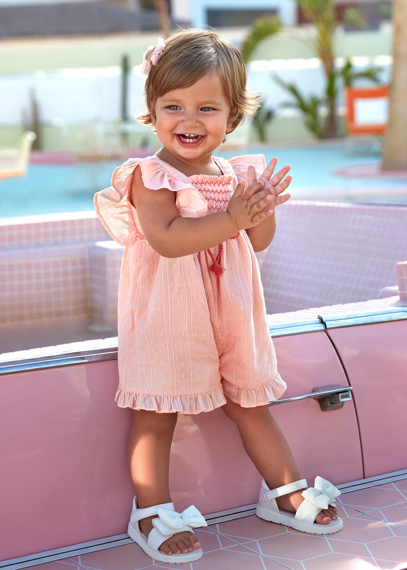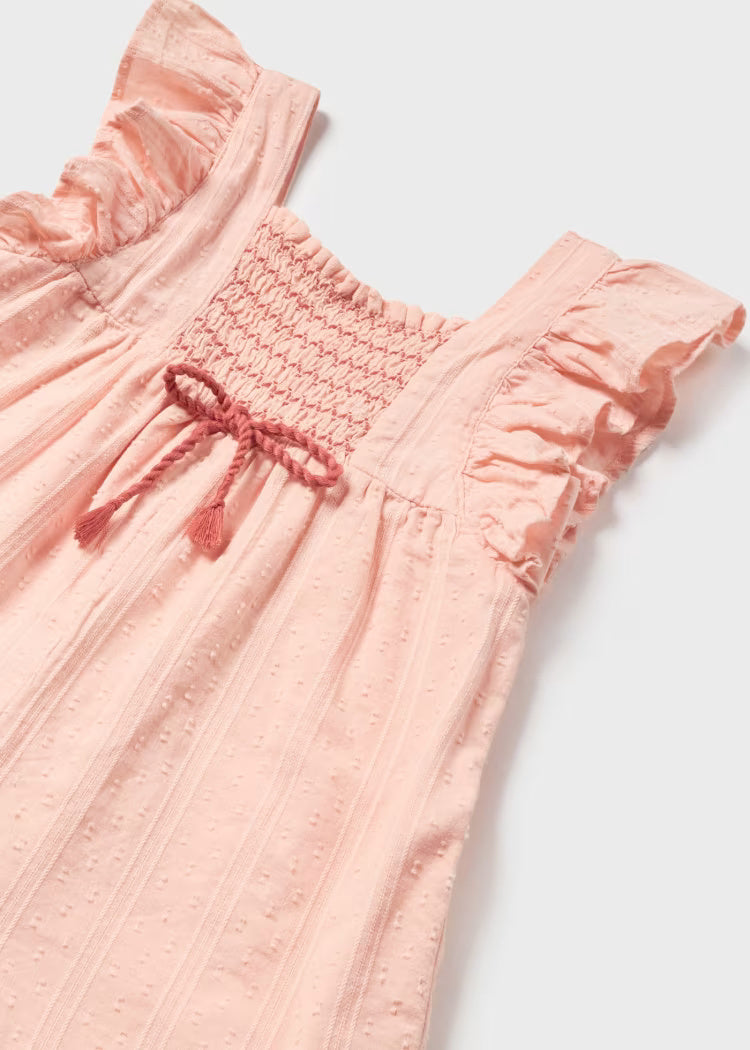 Rosafarbenes, plissiertes, gefüttertes Mayoral-Babykleid mit Schleifen