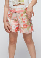 Mayoral-Mädchen-Satinshorts mit Blumenmuster in Fuchsia und Türkis