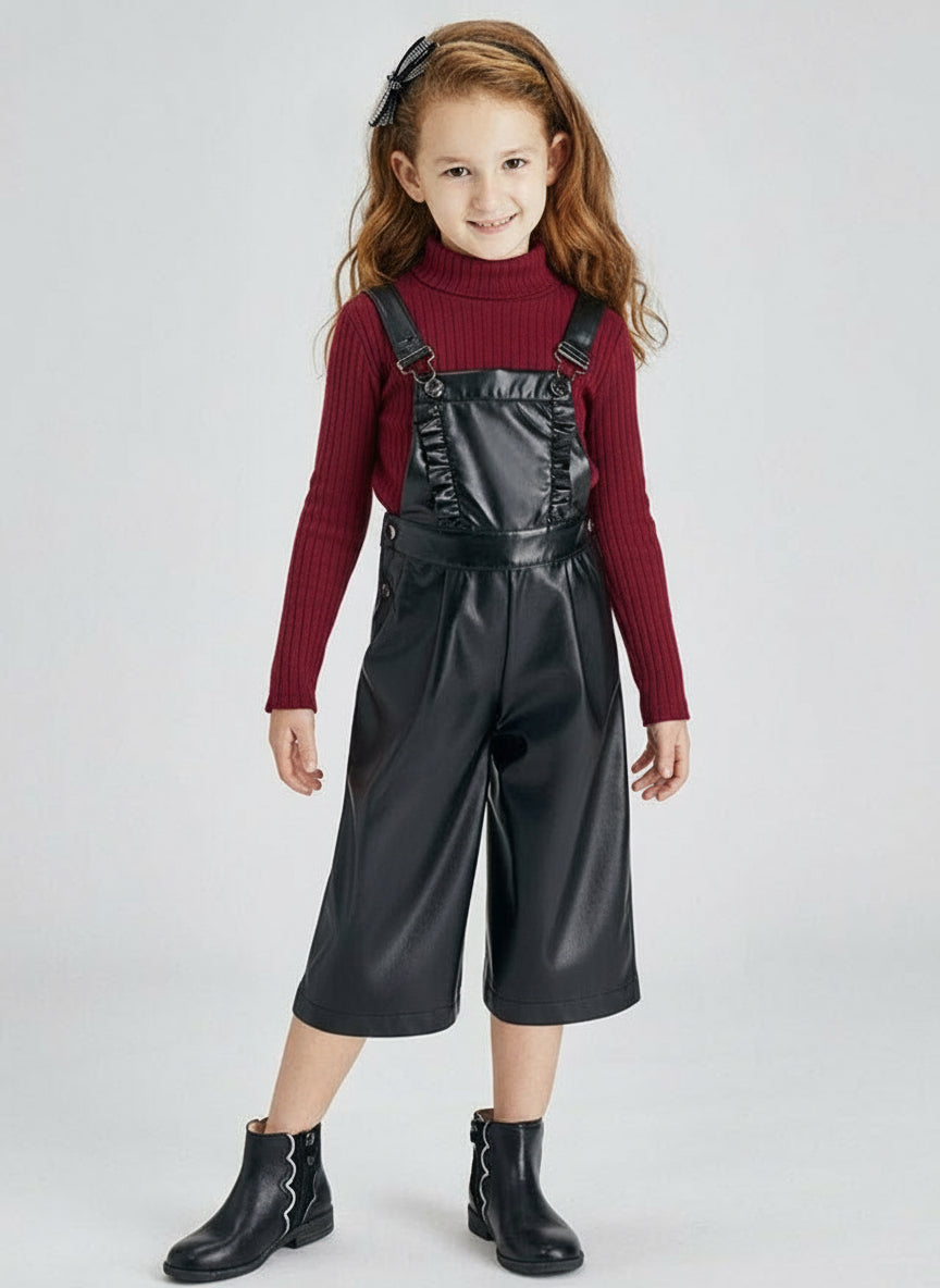 Mayoral Mädchen-Latzhose aus schwarzem Kunstleder