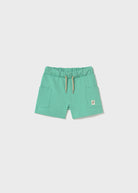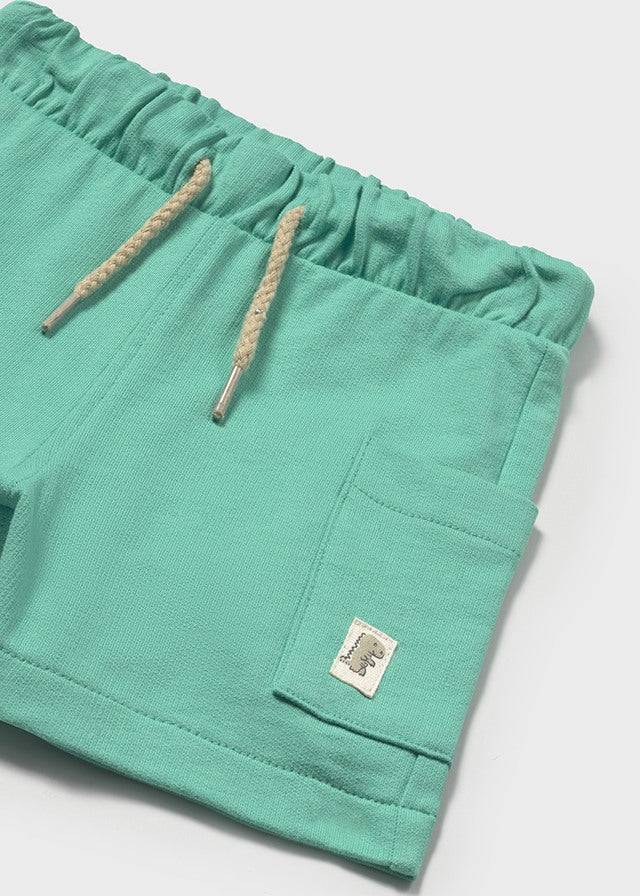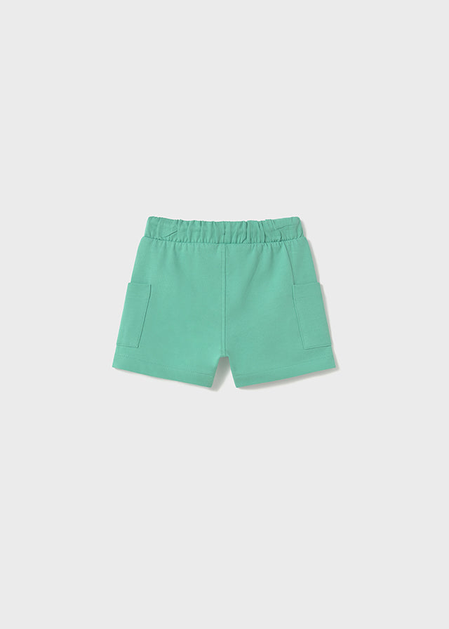 Babyshorts mit elastischem Bund und verstellbarem Kordelzug. Funktionelle Vordertasche.