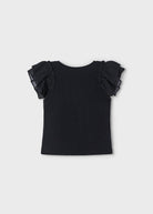 Schwarzes Chiffon-Rüschen-T-Shirt für Mädchen der Bürgermeisterin