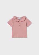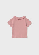 Rosa geripptes Poloshirt von Mayoral mit Rüschenkragen für Neugeborene