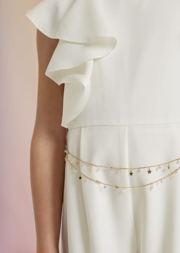 Crêpe-Jumpsuit für Mädchen mit weißem Kettengürtel von Abel&Lula