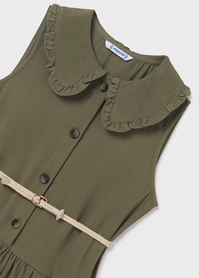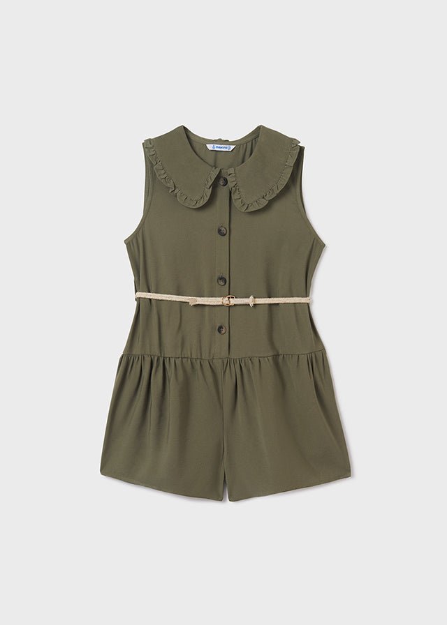 Kurzer Overall aus frischer Viskose mit Hemdkragen und passendem Gürtel.