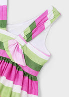 Mädchen des Bürgermeisters asymmetrisch gestreiftes Kleid in Grün und Orchidee