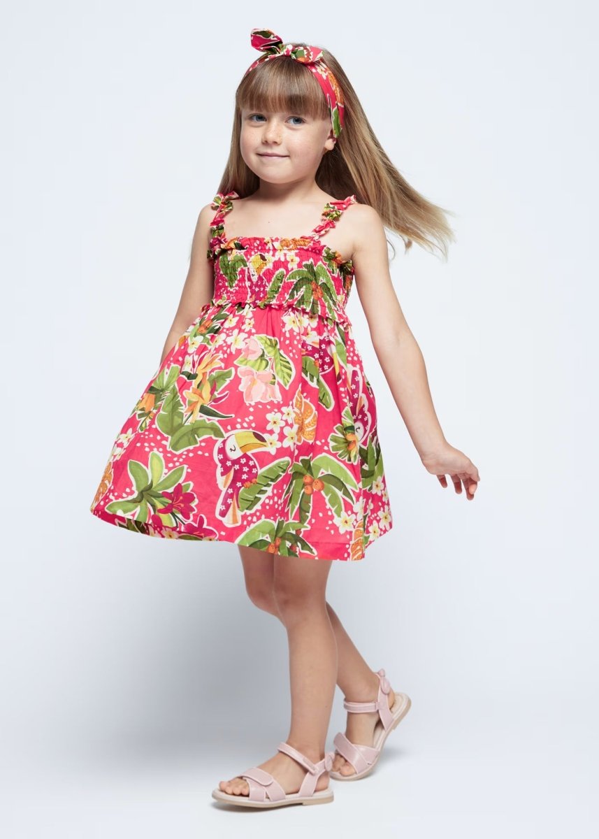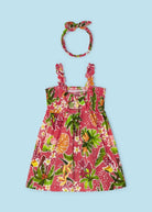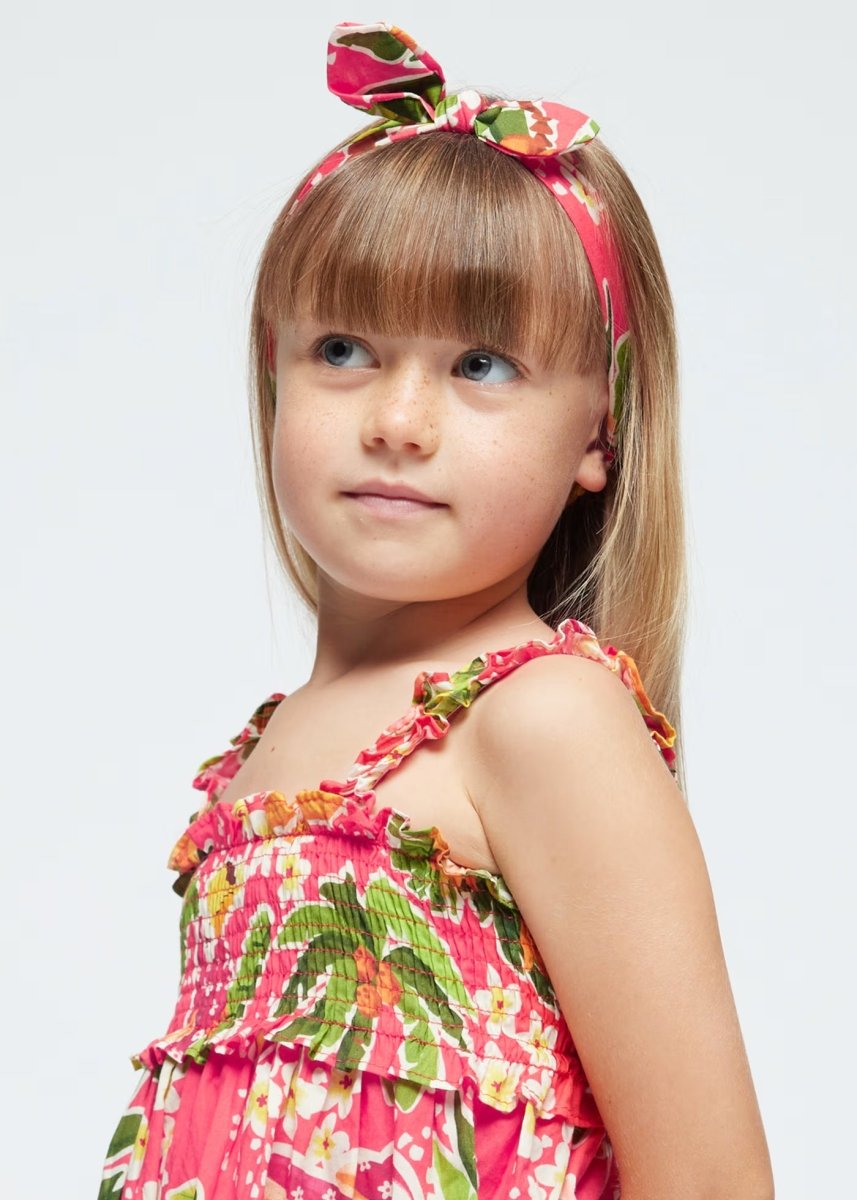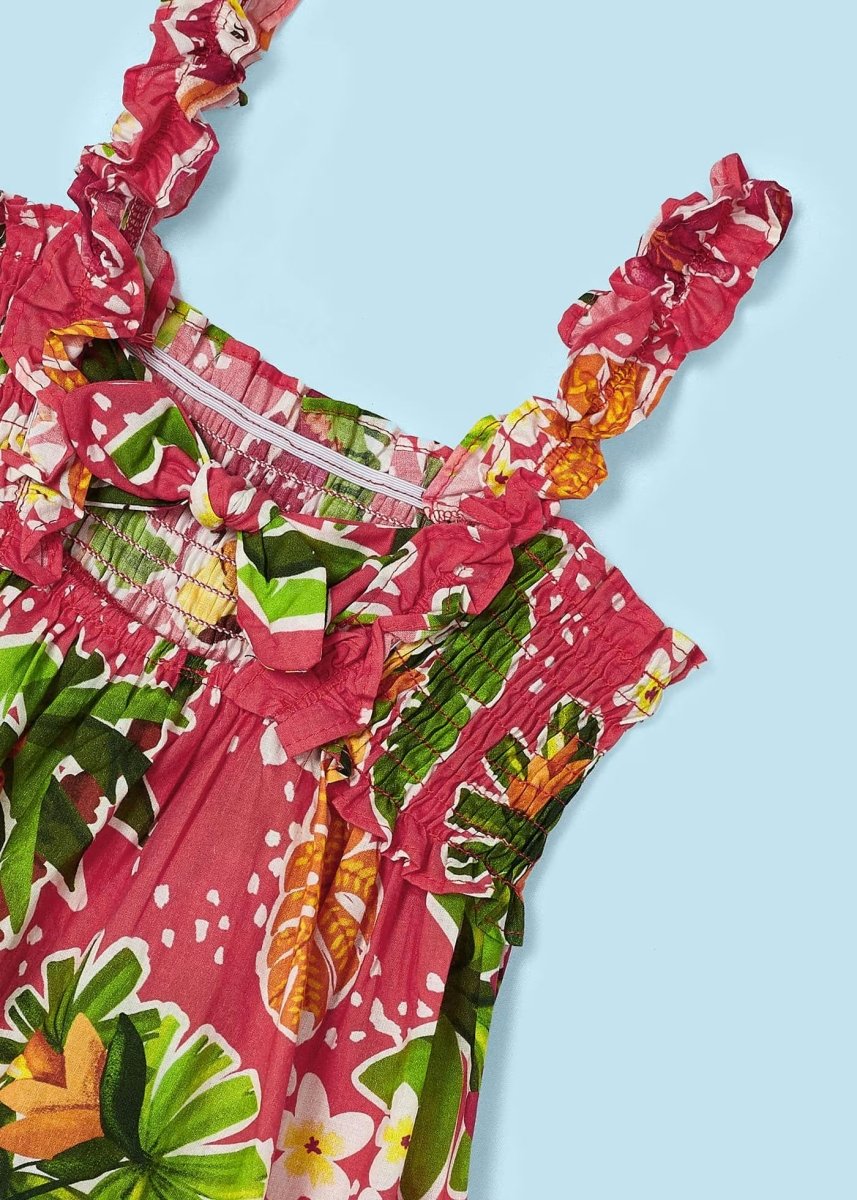 Mayoral rot-orangefarbenes Blumenkleid mit Trägern für Mädchen
