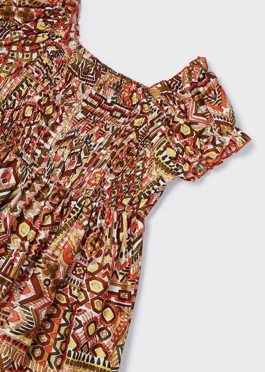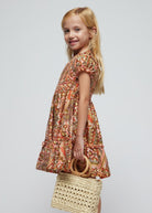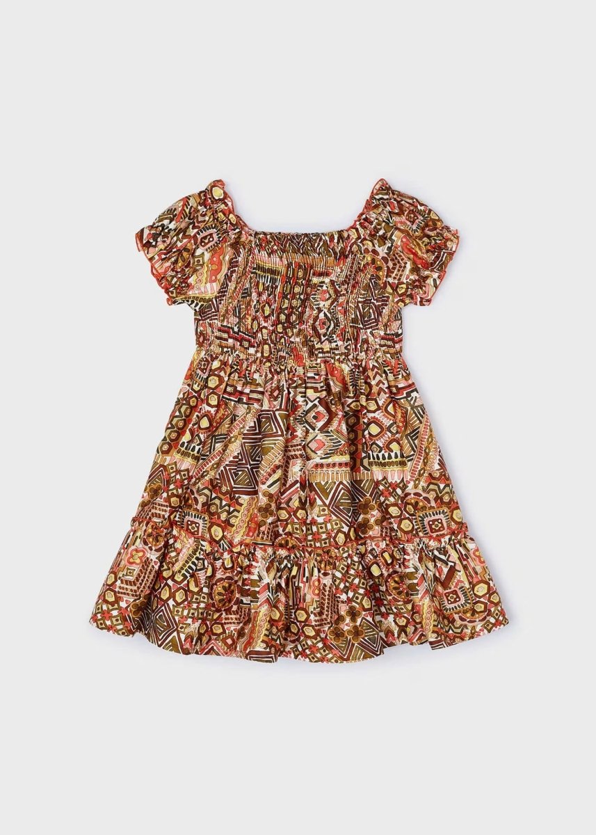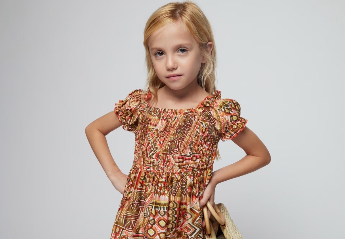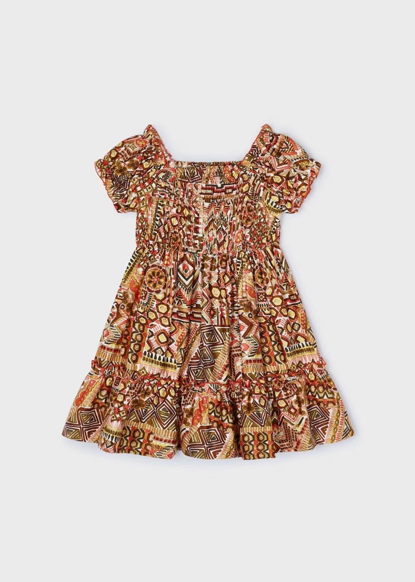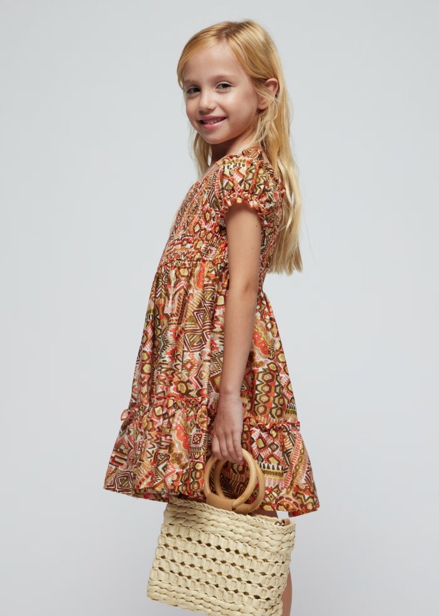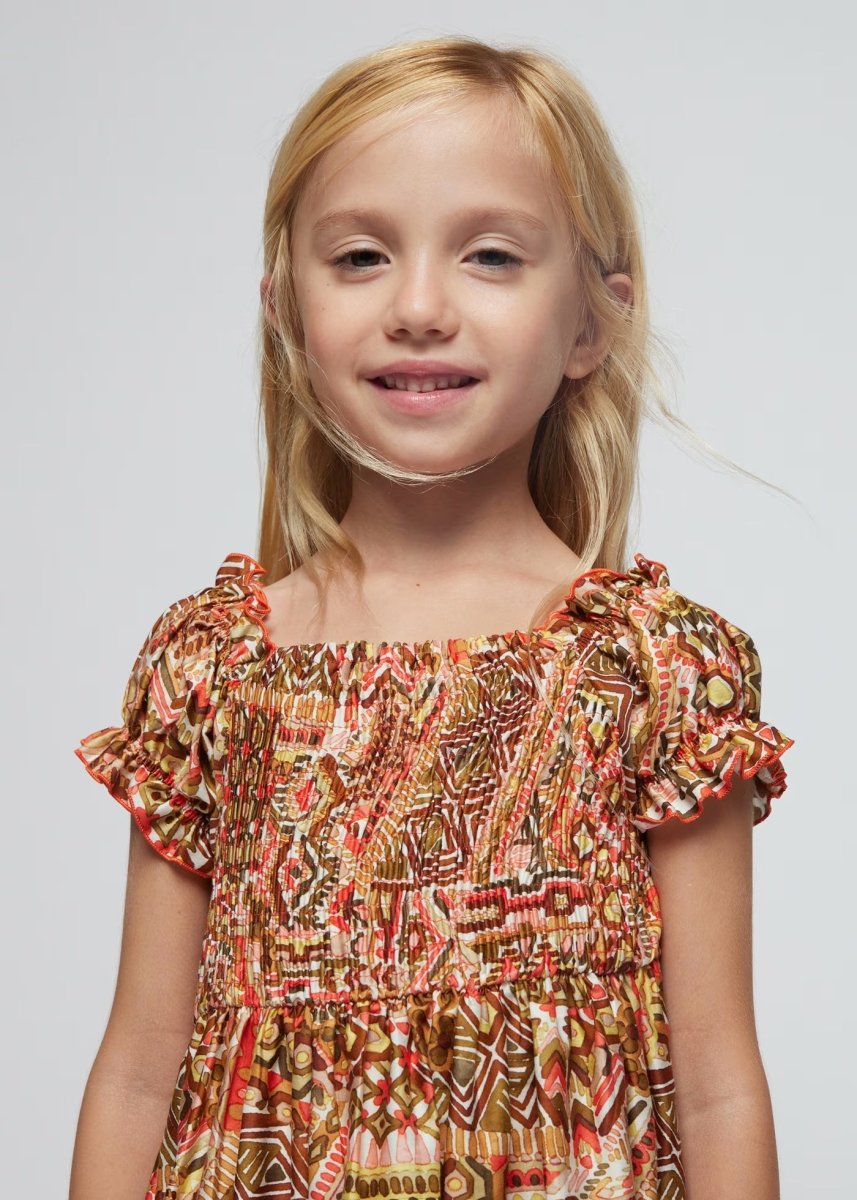 Gesmoktes Kleid aus frischer Baumwolle für Mädchen, Mayral Tribal Orange