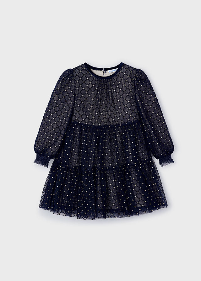 Marineblaues, gemustertes Tüllkleid von Mayoral für Mädchen