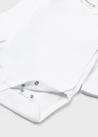 Langarm-Body für Neugeborene. Überkreuzter Ausschnitt und durchgehende seitliche Öffnung mit Druckknöpfen, um das Tragen des Bodys zu erleichtern. Druckknopfverschluss an der Innenseite der Oberschenkel erleichtert die Passform. Stoff aus 100 % Baumwolle. Um die Passform des Bodys zu erleichtern, wird in den kleinen Größen (von 0-1 bis 2-4 Monaten) die Öffnung an den Schultern durch eine komplette seitliche Öffnung mit Knöpfen und einem Crossover-Ausschnitt ersetzt.