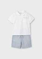 Completo con bermuda e polo bambino Mayoral bianco e azzurro righe