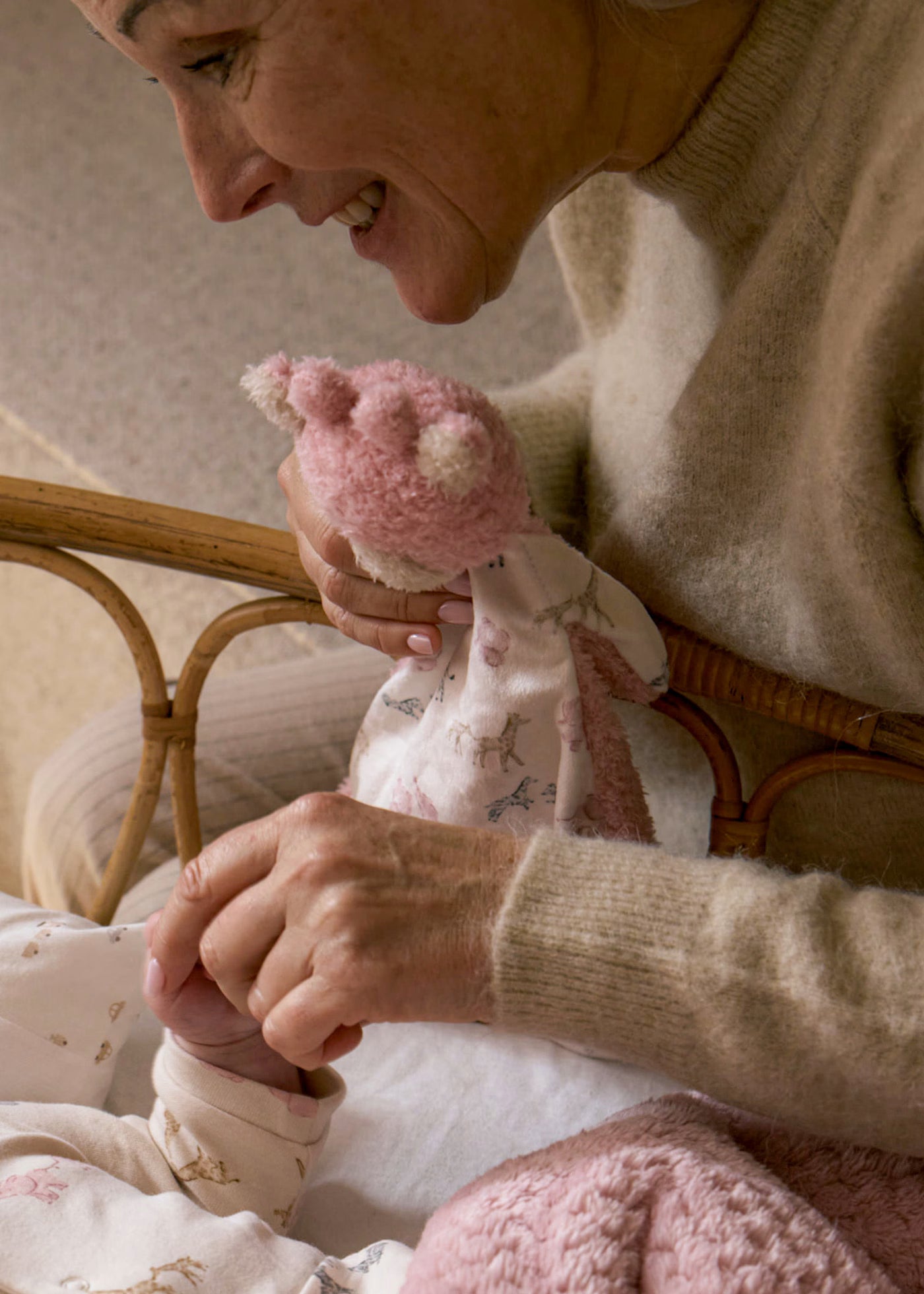 Niedliches, weiches Neugeborenen-Kuscheltier mit integrierter Decke, das zum Spielkameraden und Ruhebegleiter Ihres Babys wird.