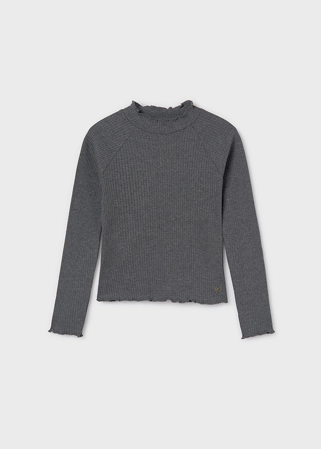 Mädchen-T-Shirt mit geripptem Rollkragenpullover in Titangrau (Mayoral Girls).