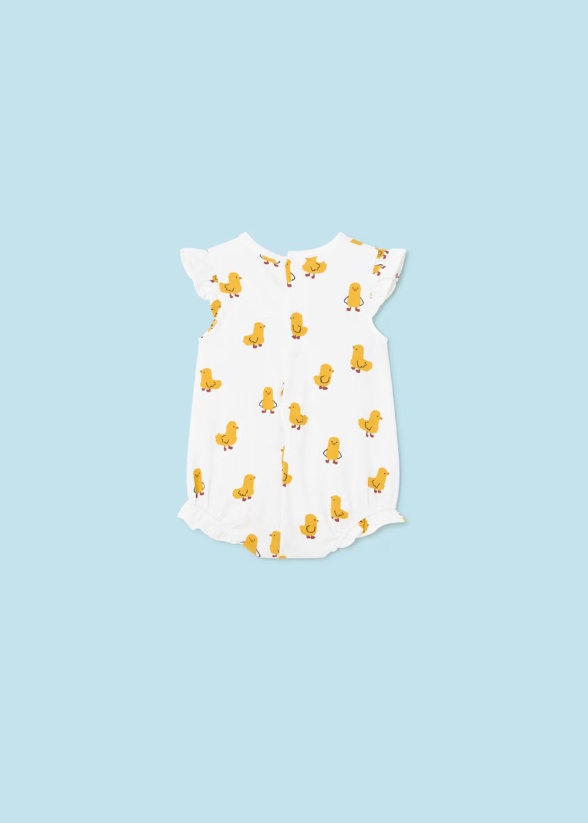 Mayoral Newborn „Chick“ gelber Strampler aus frischer Baumwolle