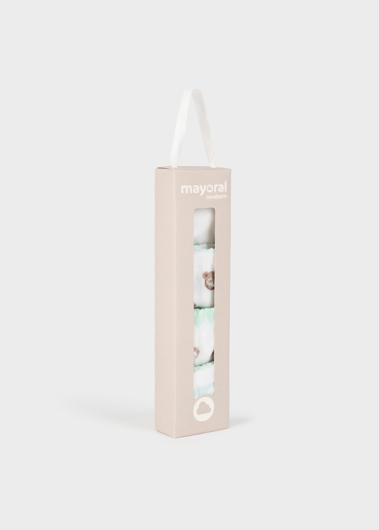 Set mit 4 Paar Mayoral Newborn-Socken mit grünem Bärenaufdruck