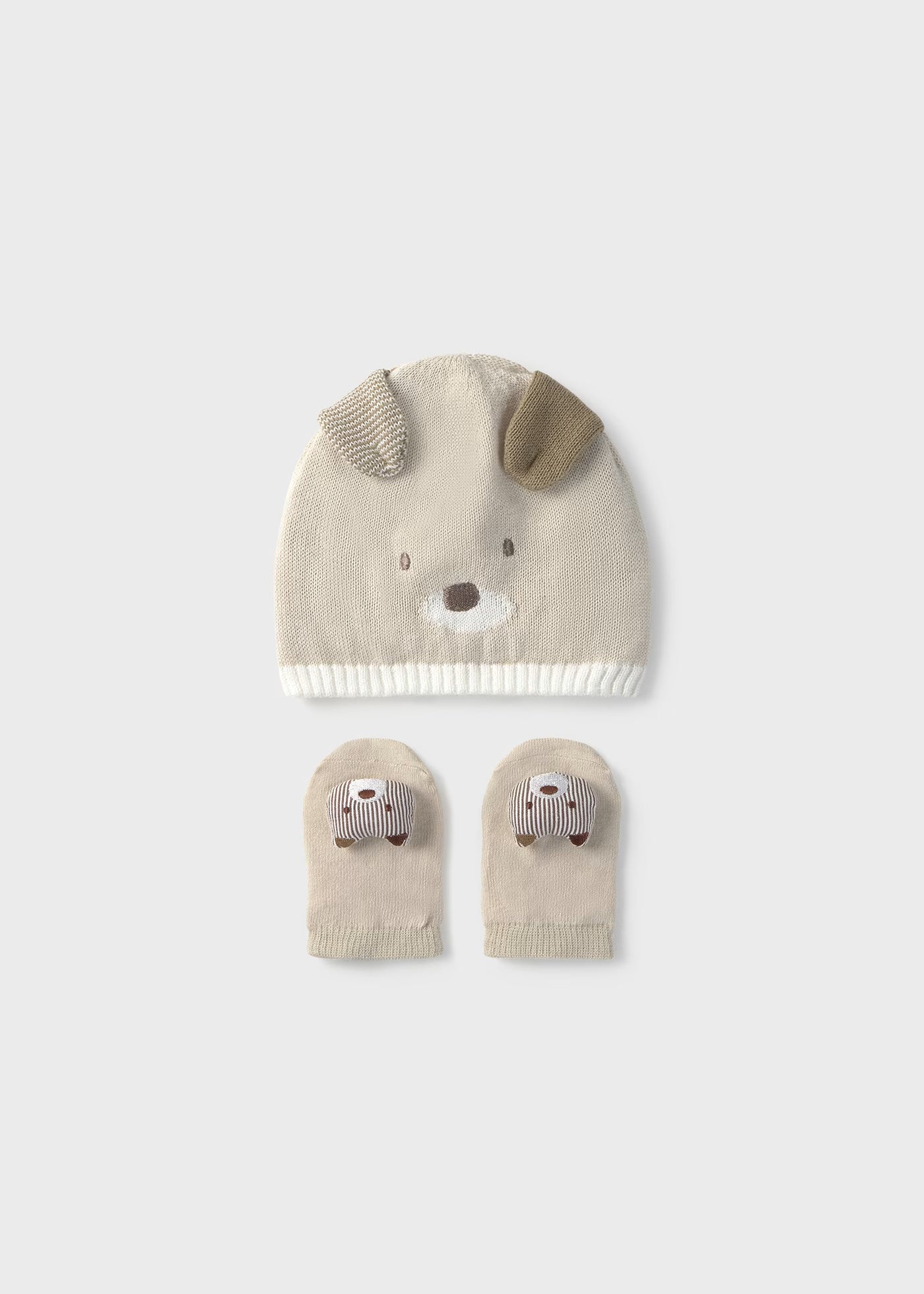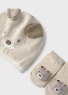 Set cappello e calzini filo cotone neonato Mayoral Newborn "Animal" beige