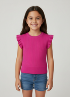Contiene LENZING TM ECOVERO TM Viscosa. Top bretelle con volant per bambina. Tessuto in tricot morbido al tatto.