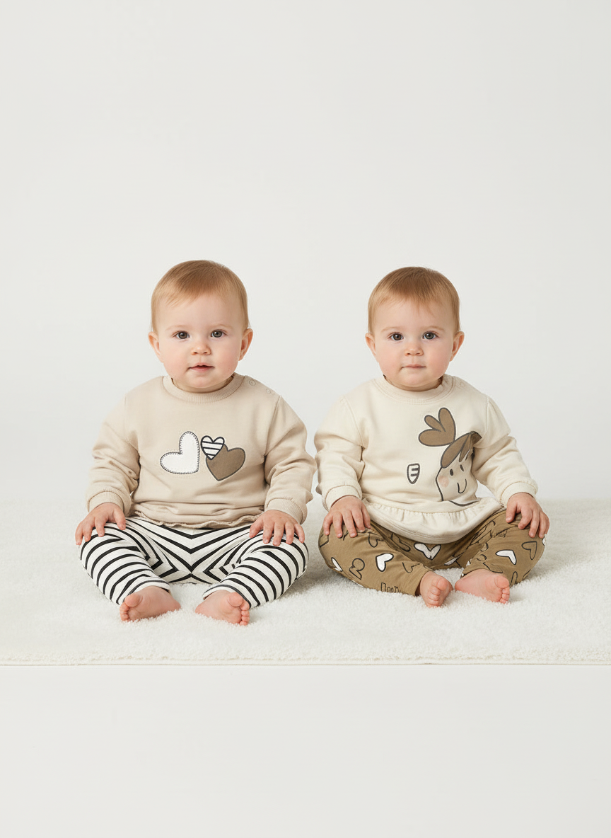Completo leggings neonata Mayoral Newborn "cuori" beige e caramello