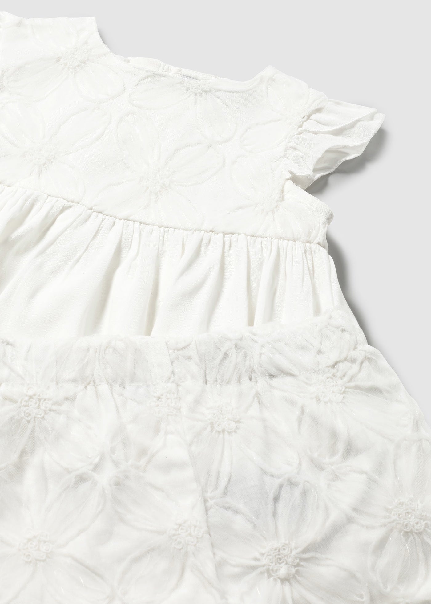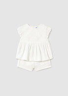 Completo pantaloncino e blusa tulle ricamo neonata Mayoral panna