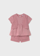 Completo pantaloncino e maglietta gilet finto neonata Mayoral rosato