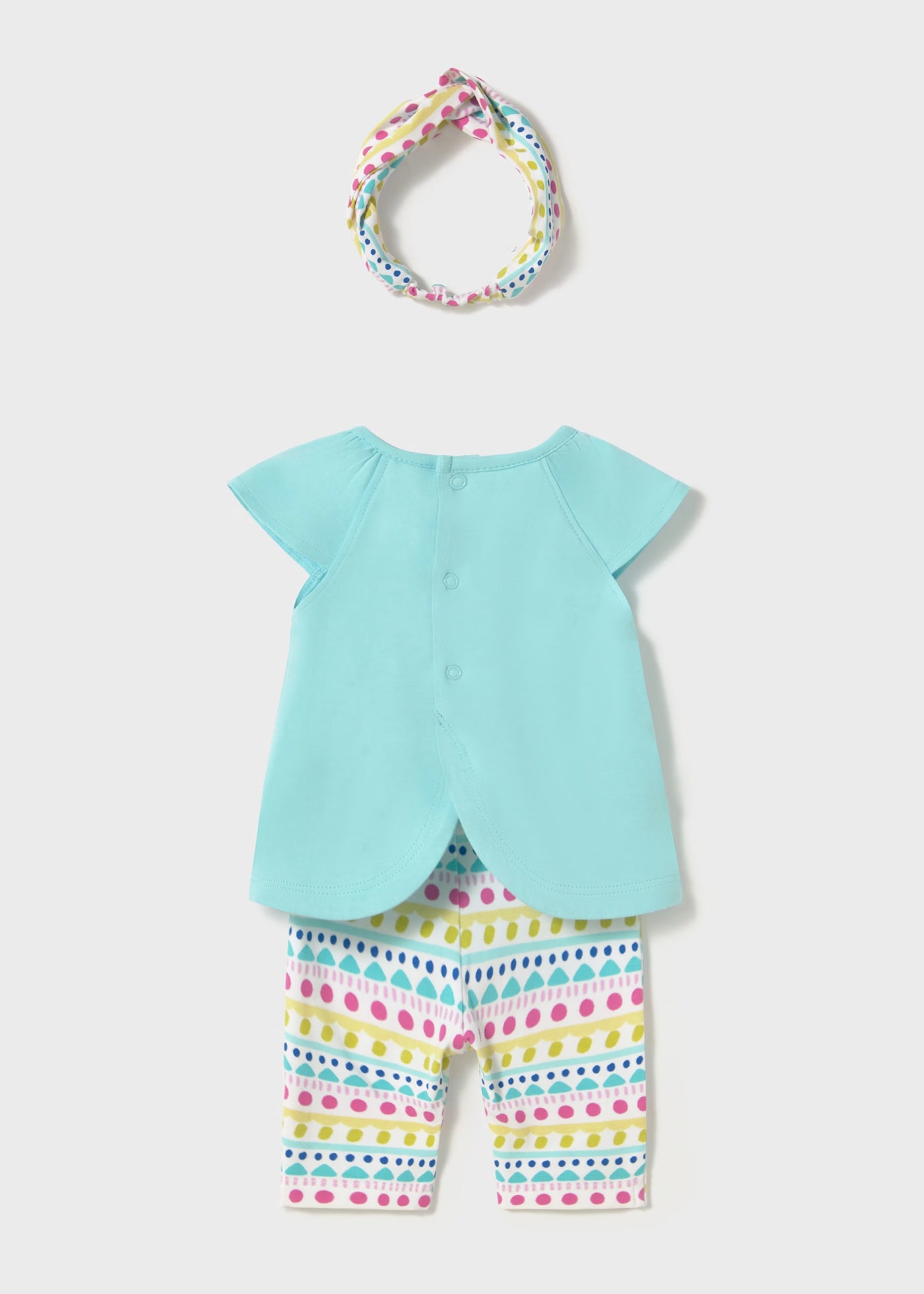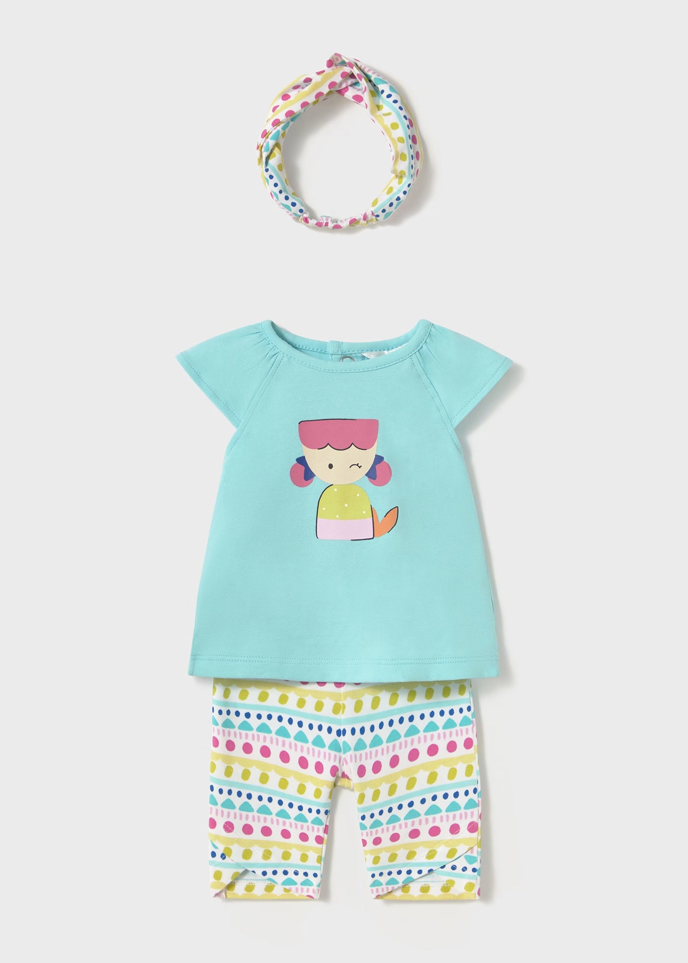 Completo 3 pezzi con fascia neonata Mayora Newborn "sirena" acqua