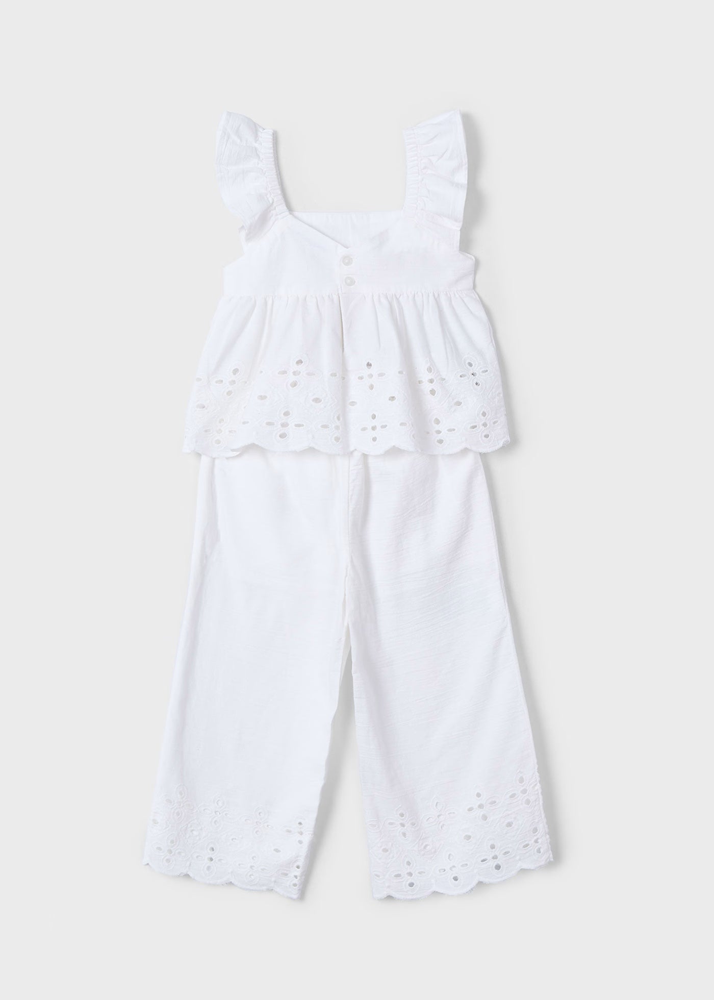 Completo pantalone e top traforato bambina Mayoral bianco
