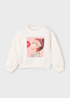 Felpa pullover cotone garzato bambina Mayoral "bimba con fermaglio" panna