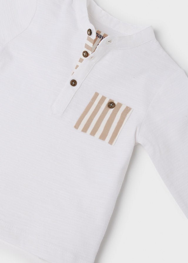 Mayoral Baby T-Shirt White with Contrast Pocket Beige